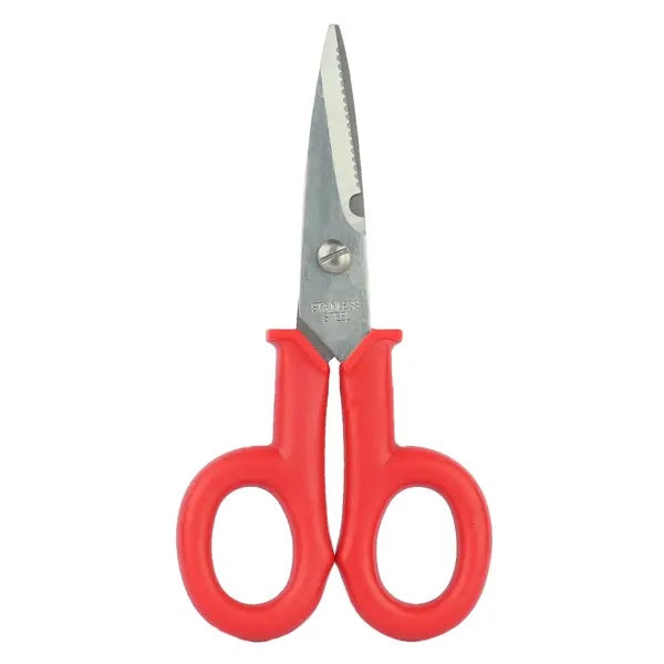 Forbici per elettricista 145 mm. in acciaio inox, manici in abs isolati, lame diritte.